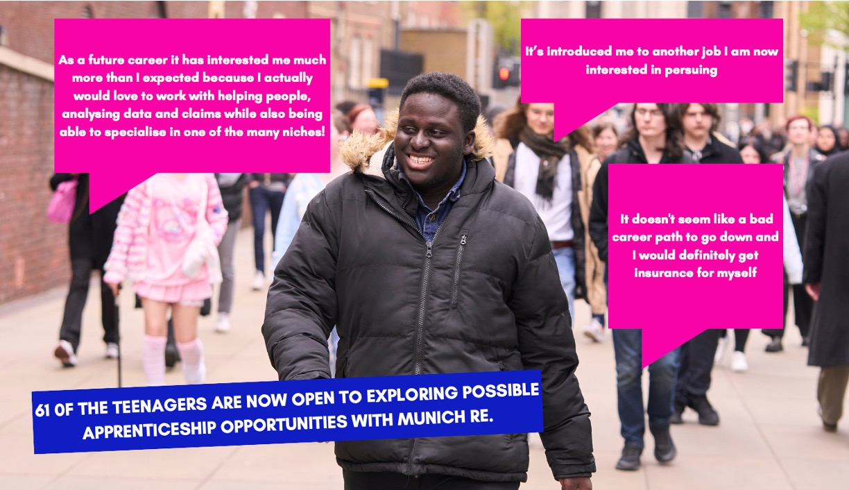 Munich RE wanted to reframe insurance for the next generation, turning an industry often seen as complex or “not for them” into an exciting, ethical, innovative career destination.